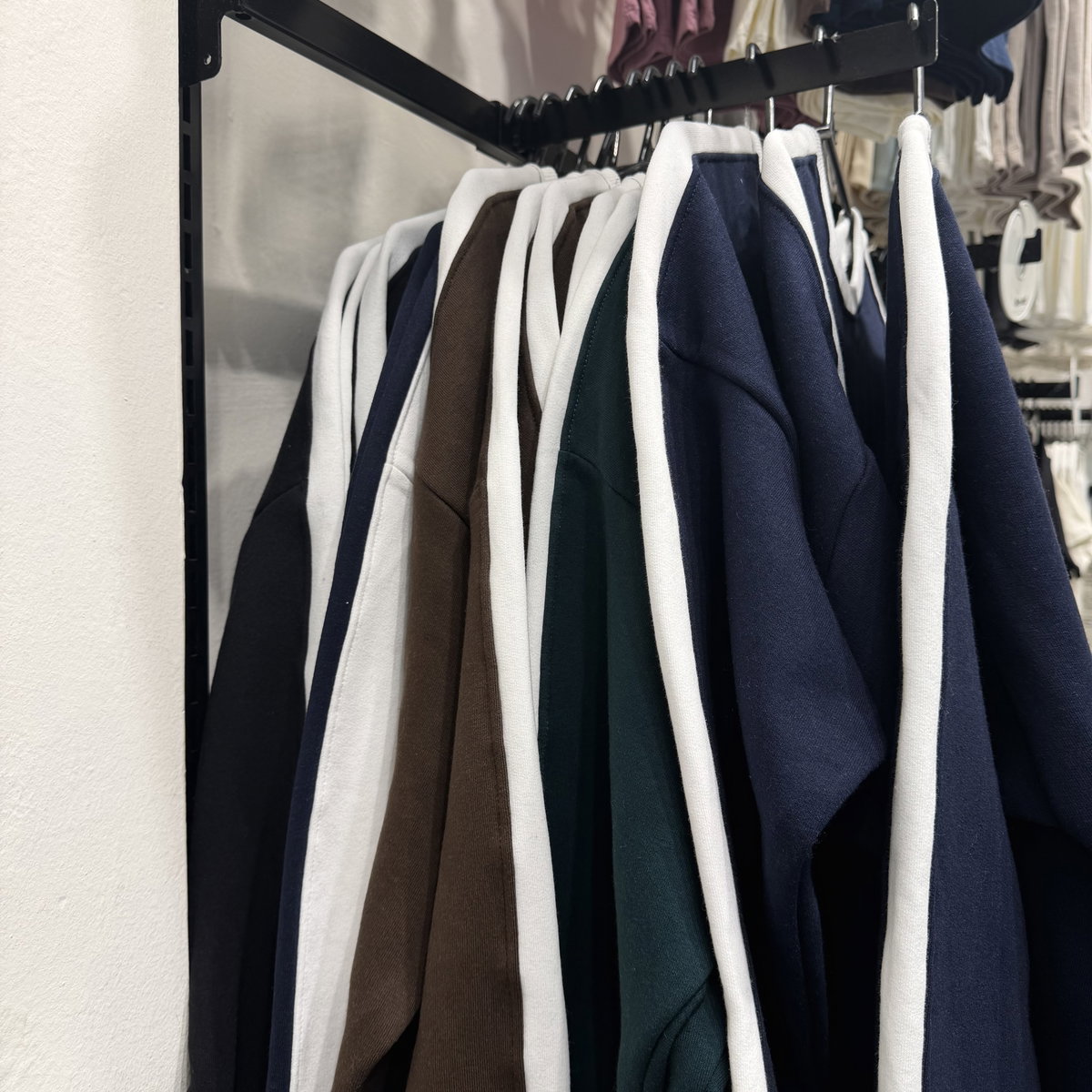 Buzo combinado estilo deportivo, con franjas en mangas y estampado al relieve "23".