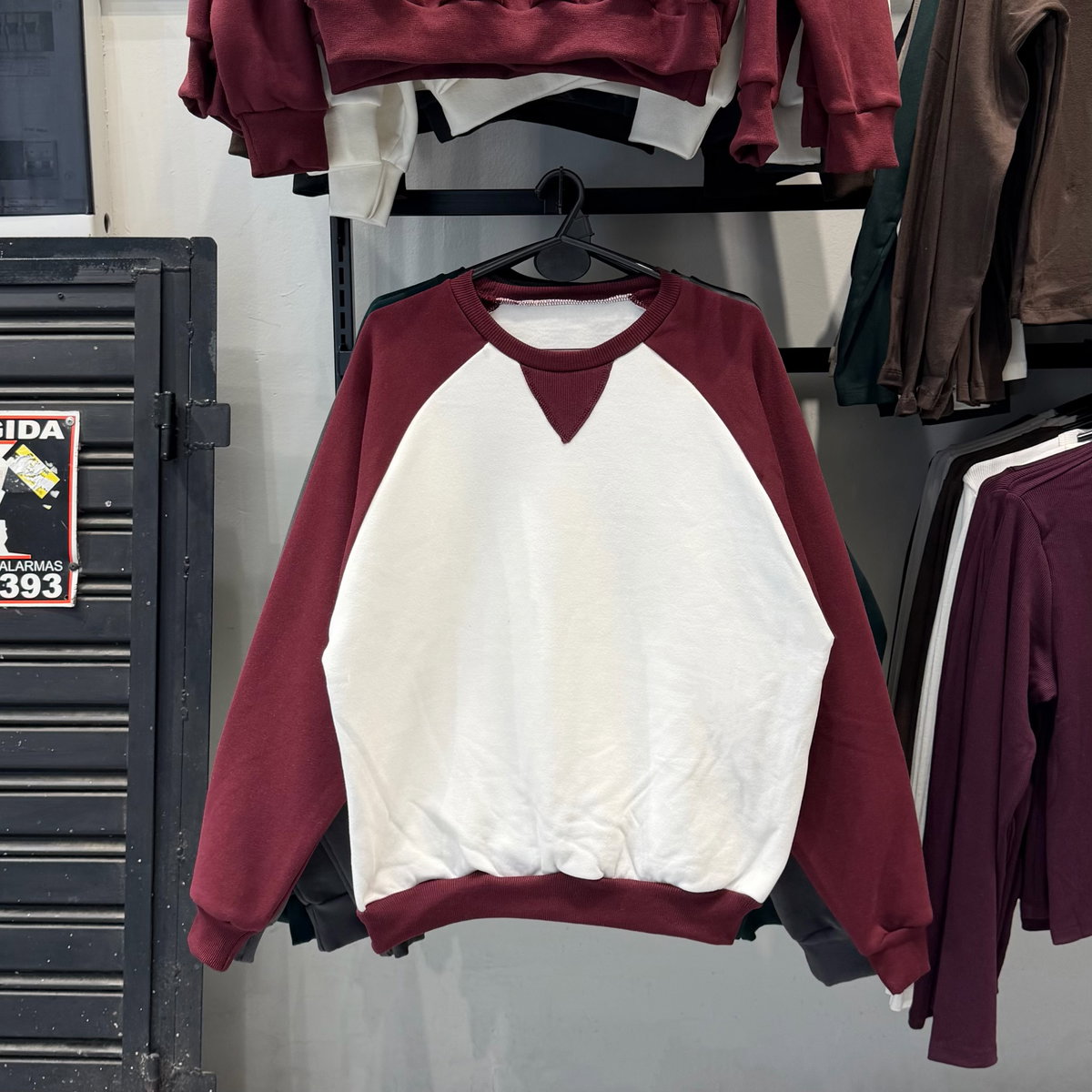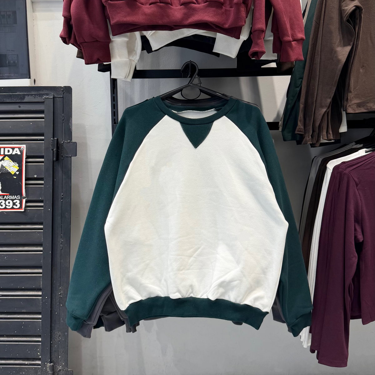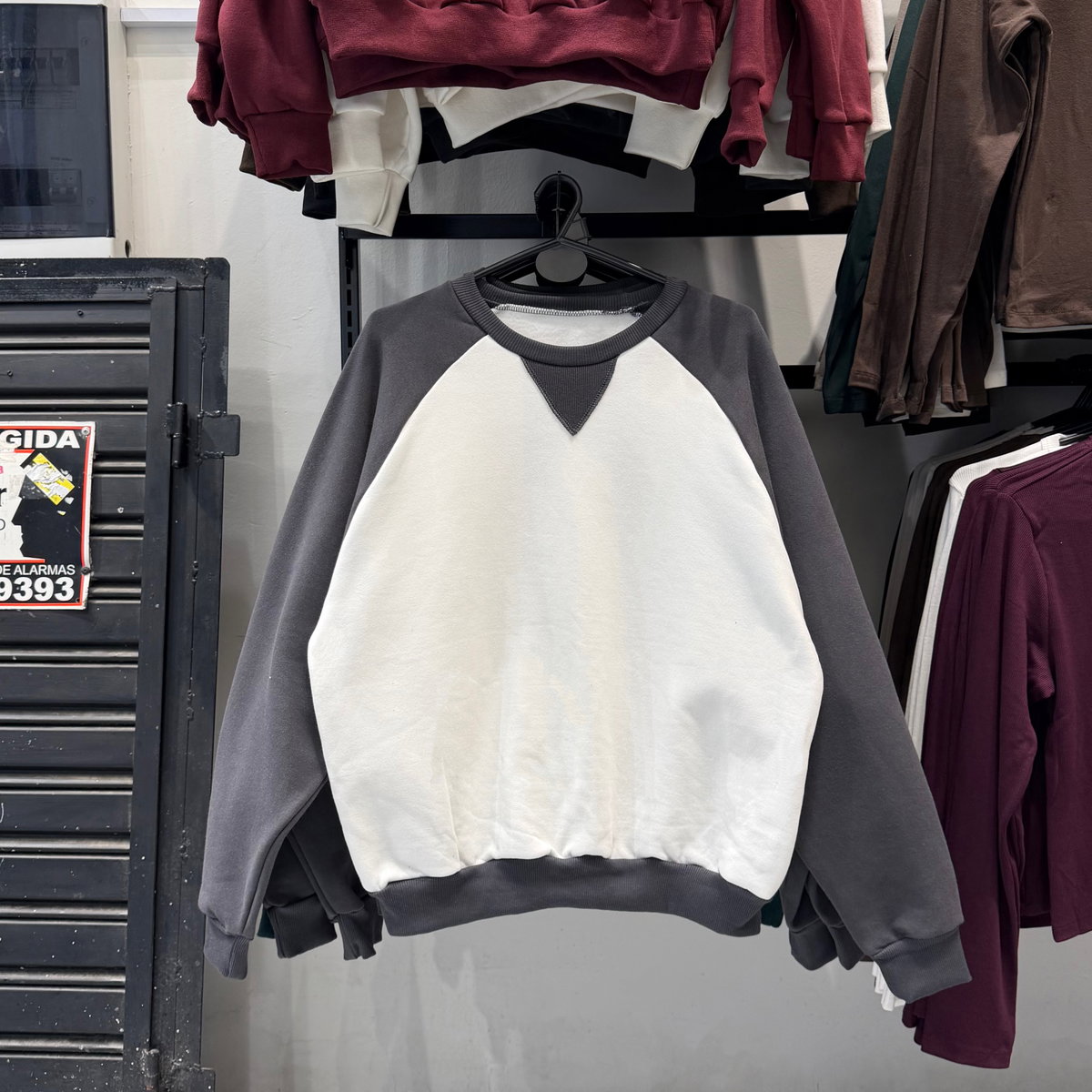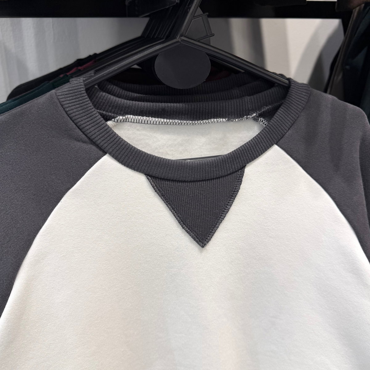 Buzo ranglan, con detalle triangular acanalado en ribb.