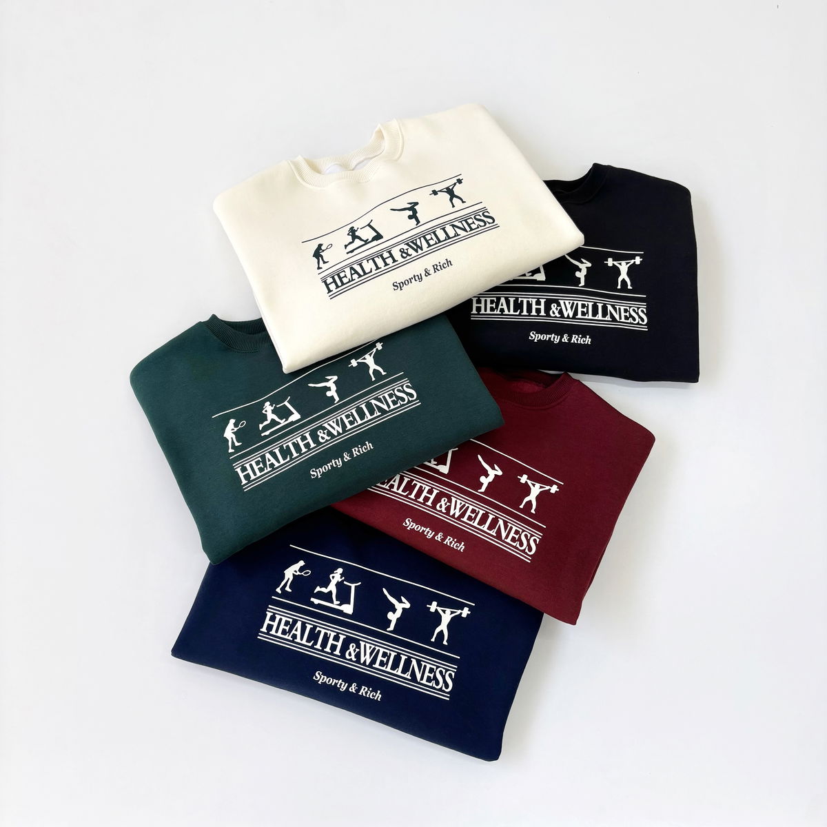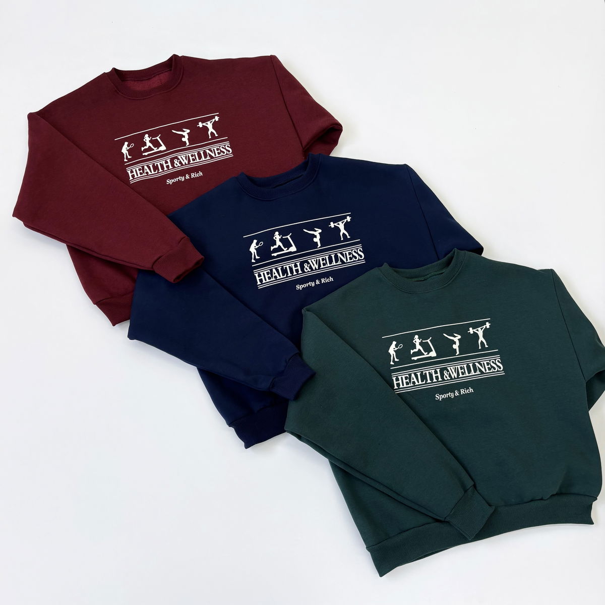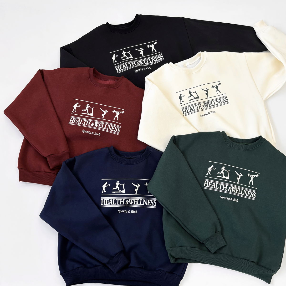 Buzo cuello redondo y estampado "HEALTH & WELLNESS"
