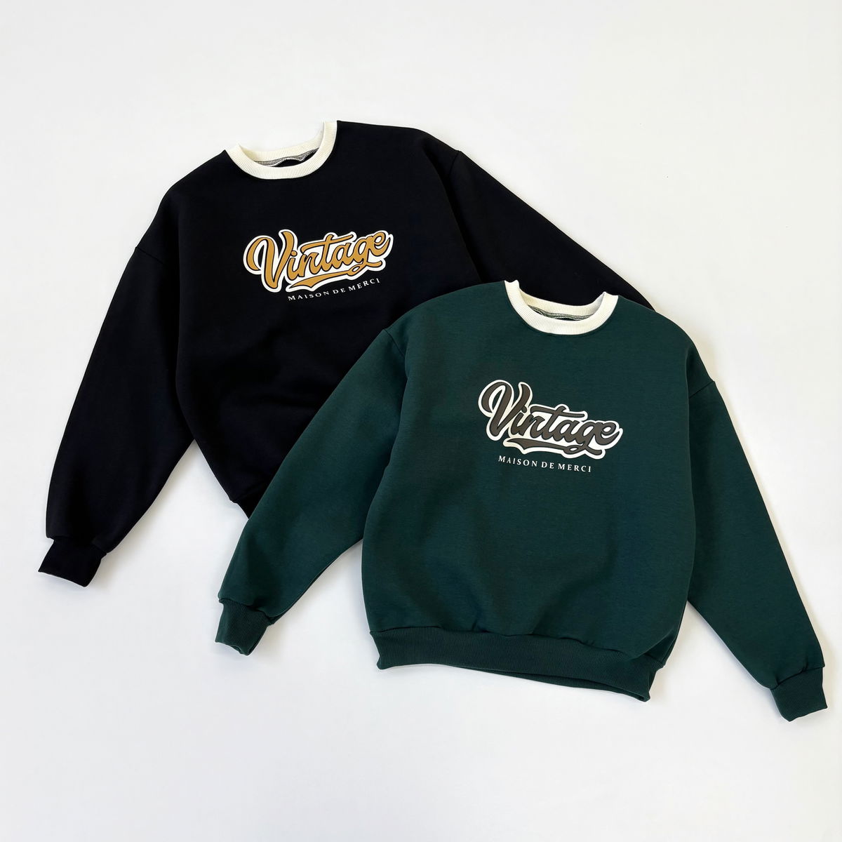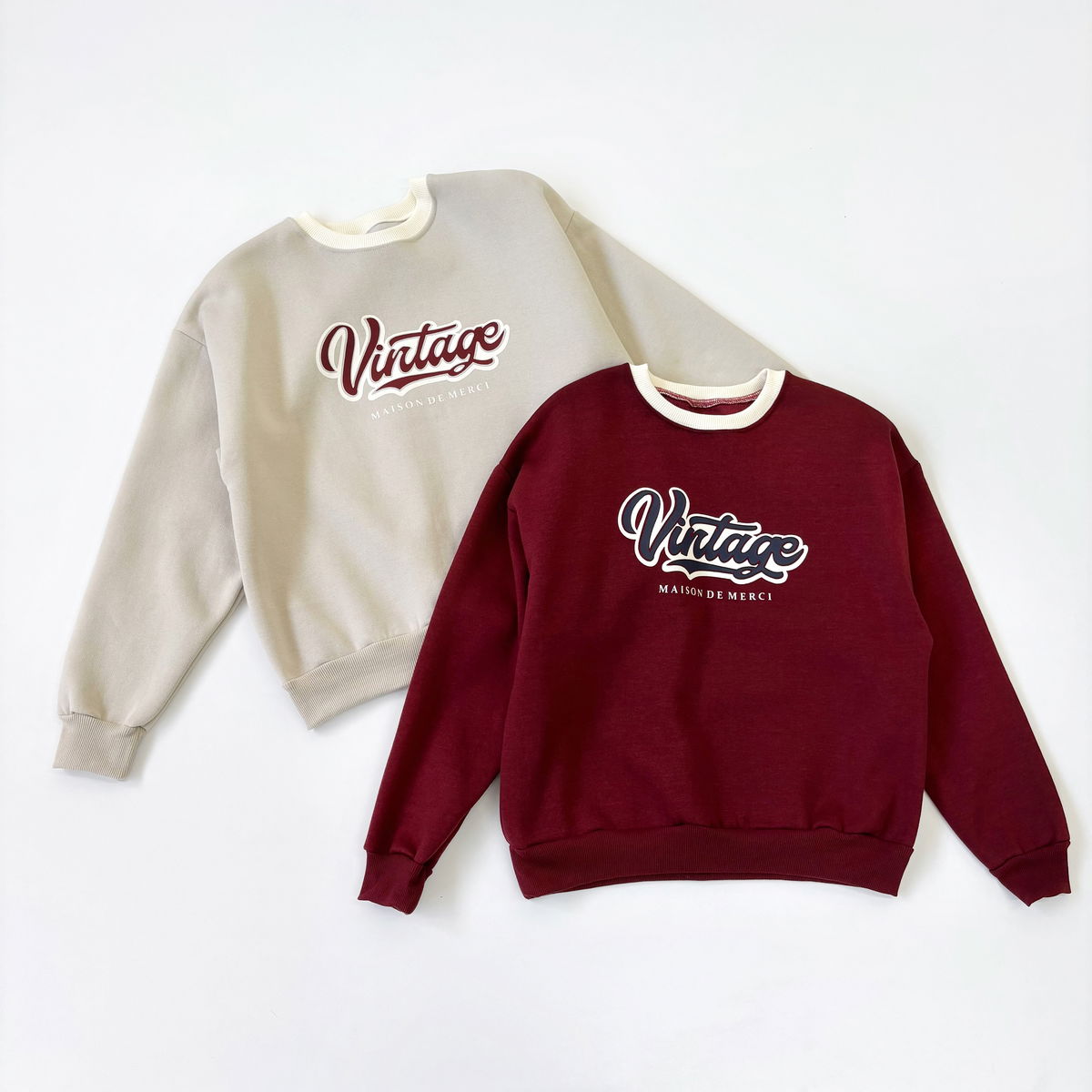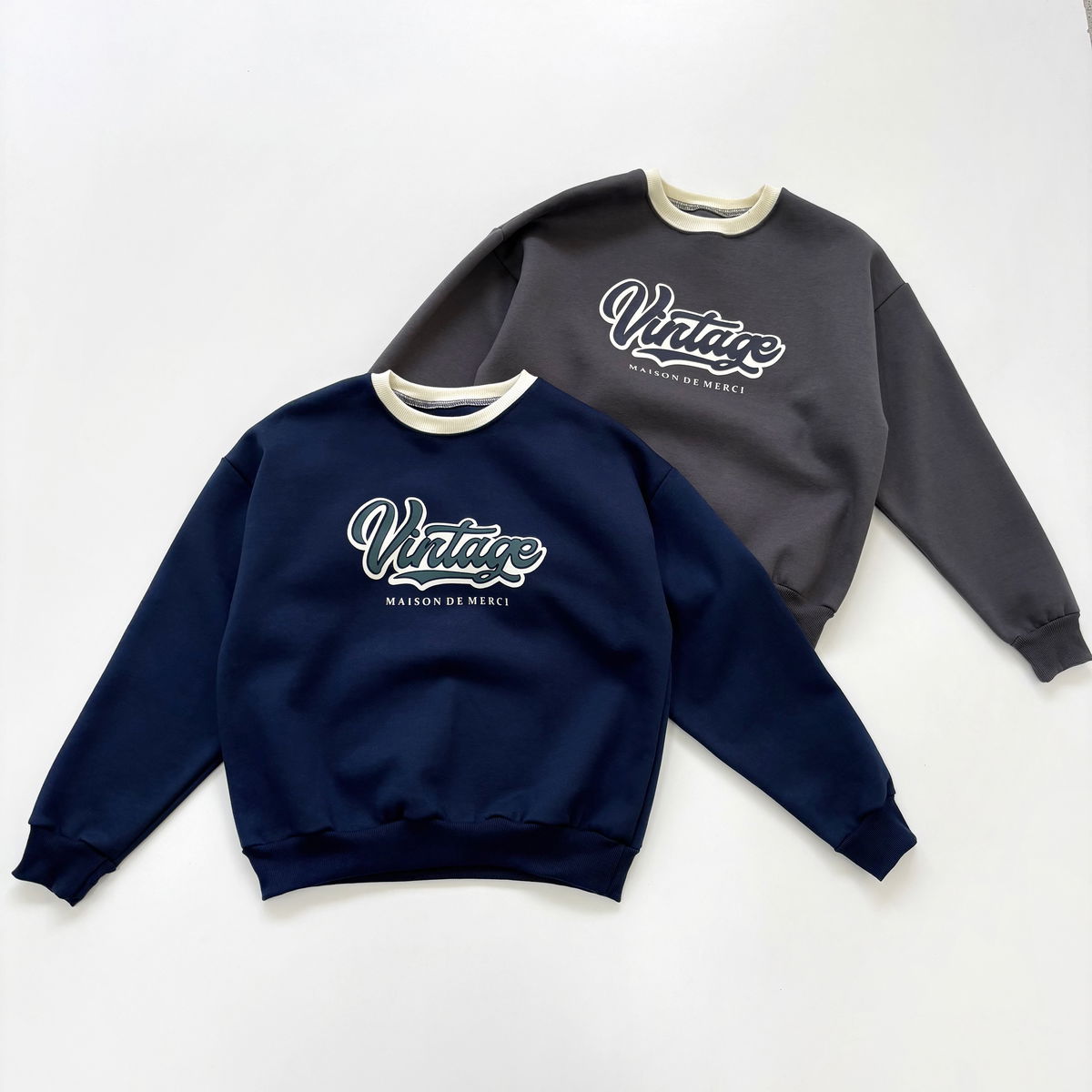 Buzo cuello redondo combinado y estampado "VINTAGE"