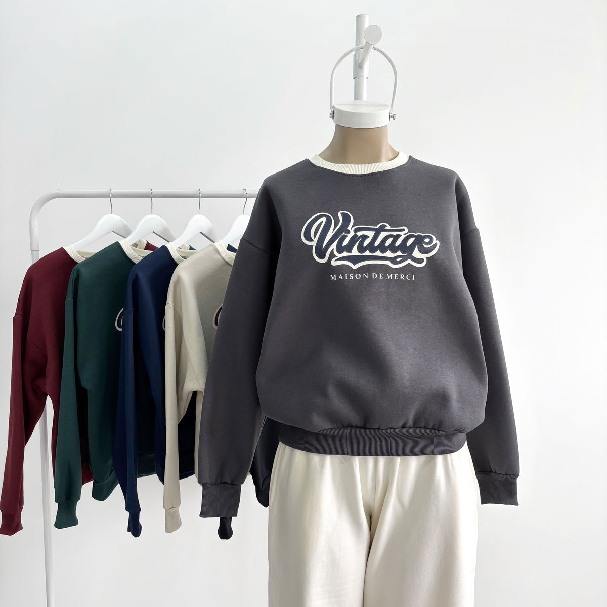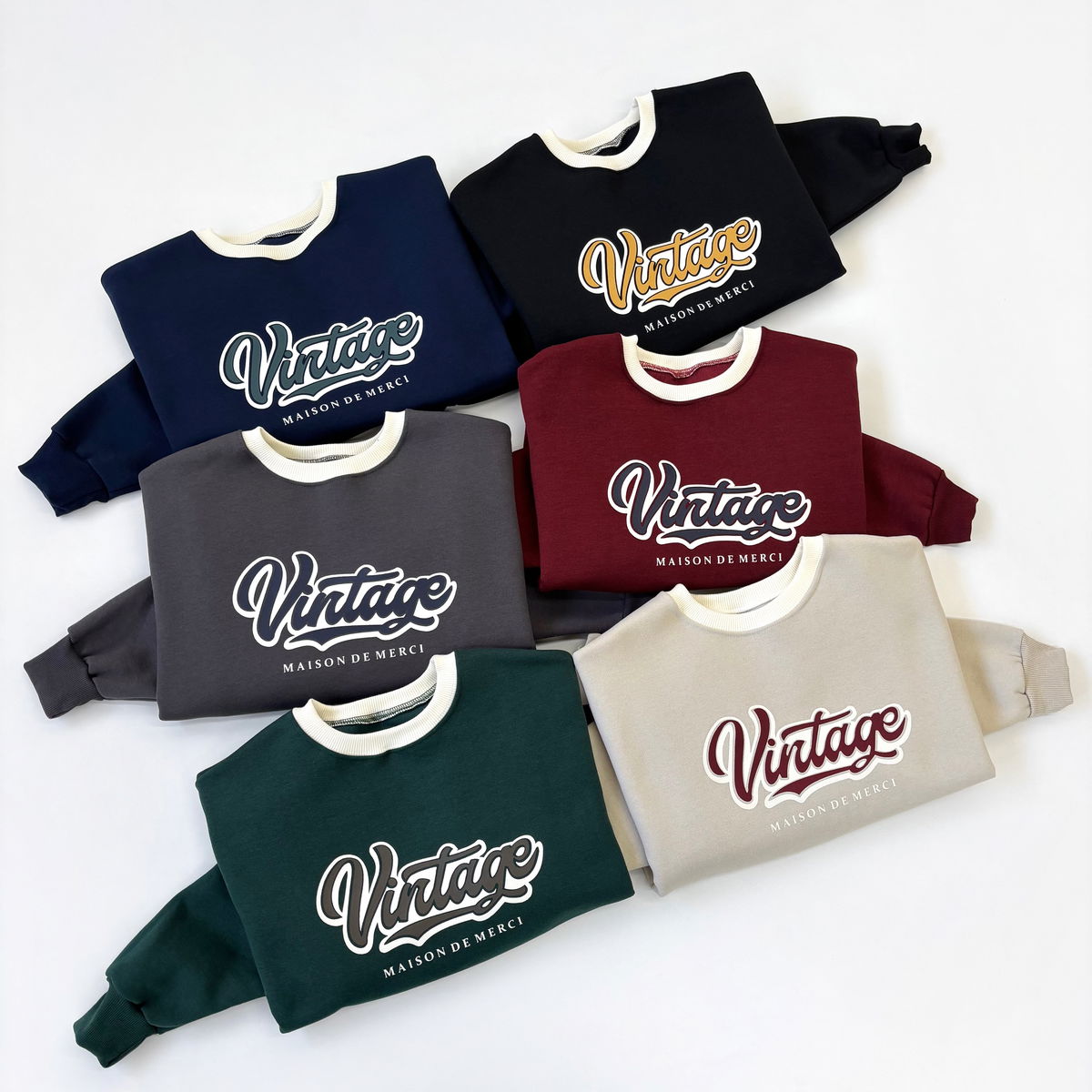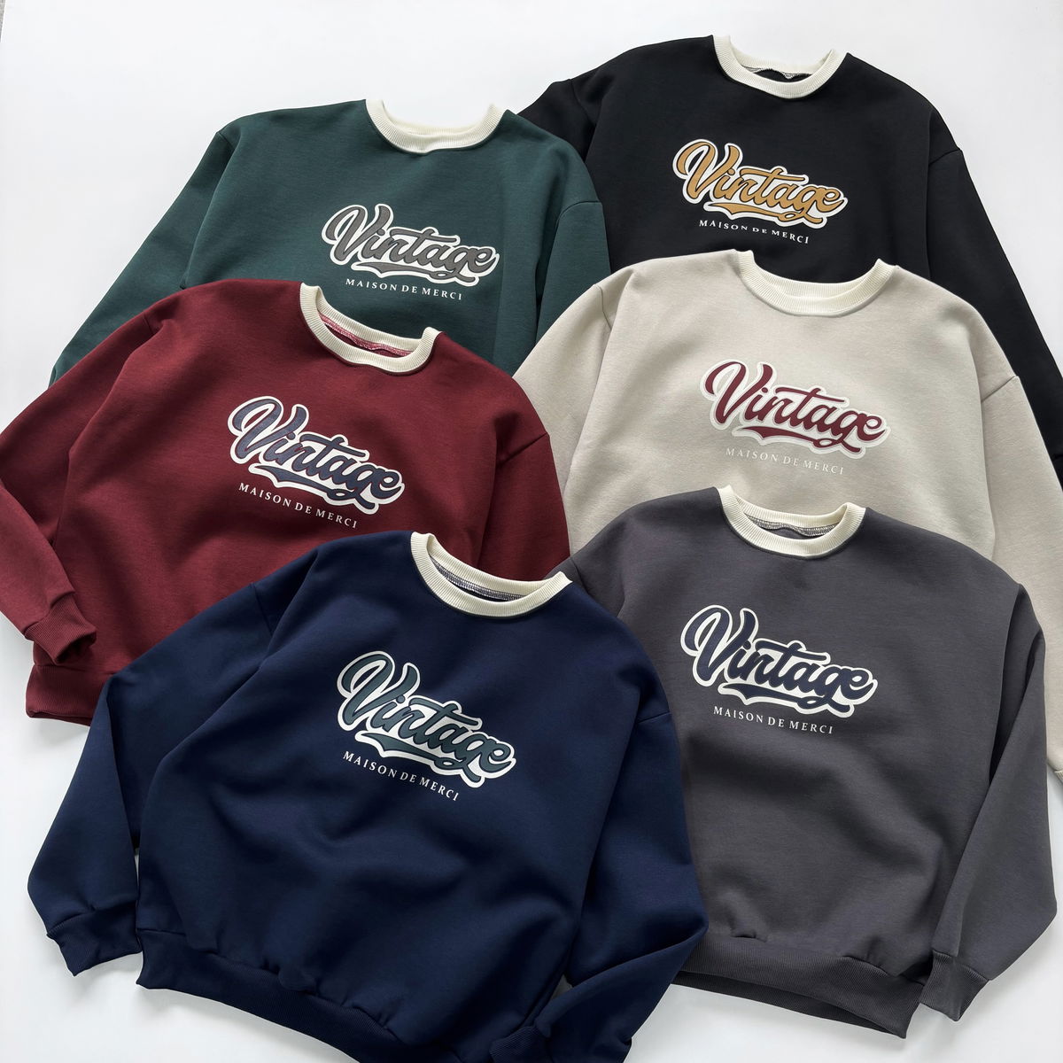 Buzo cuello redondo combinado y estampado "VINTAGE"