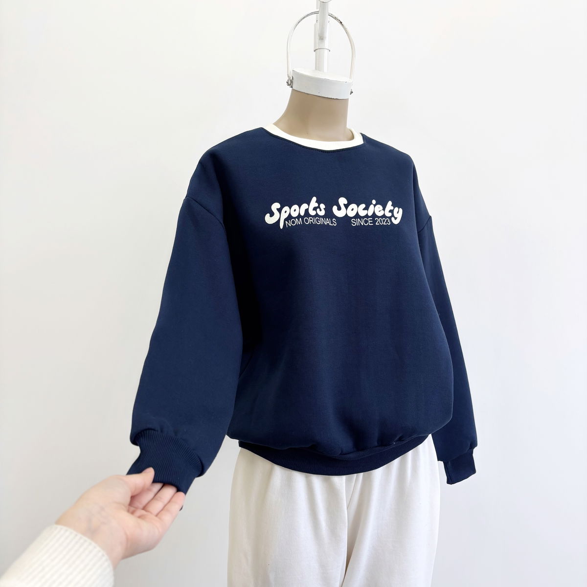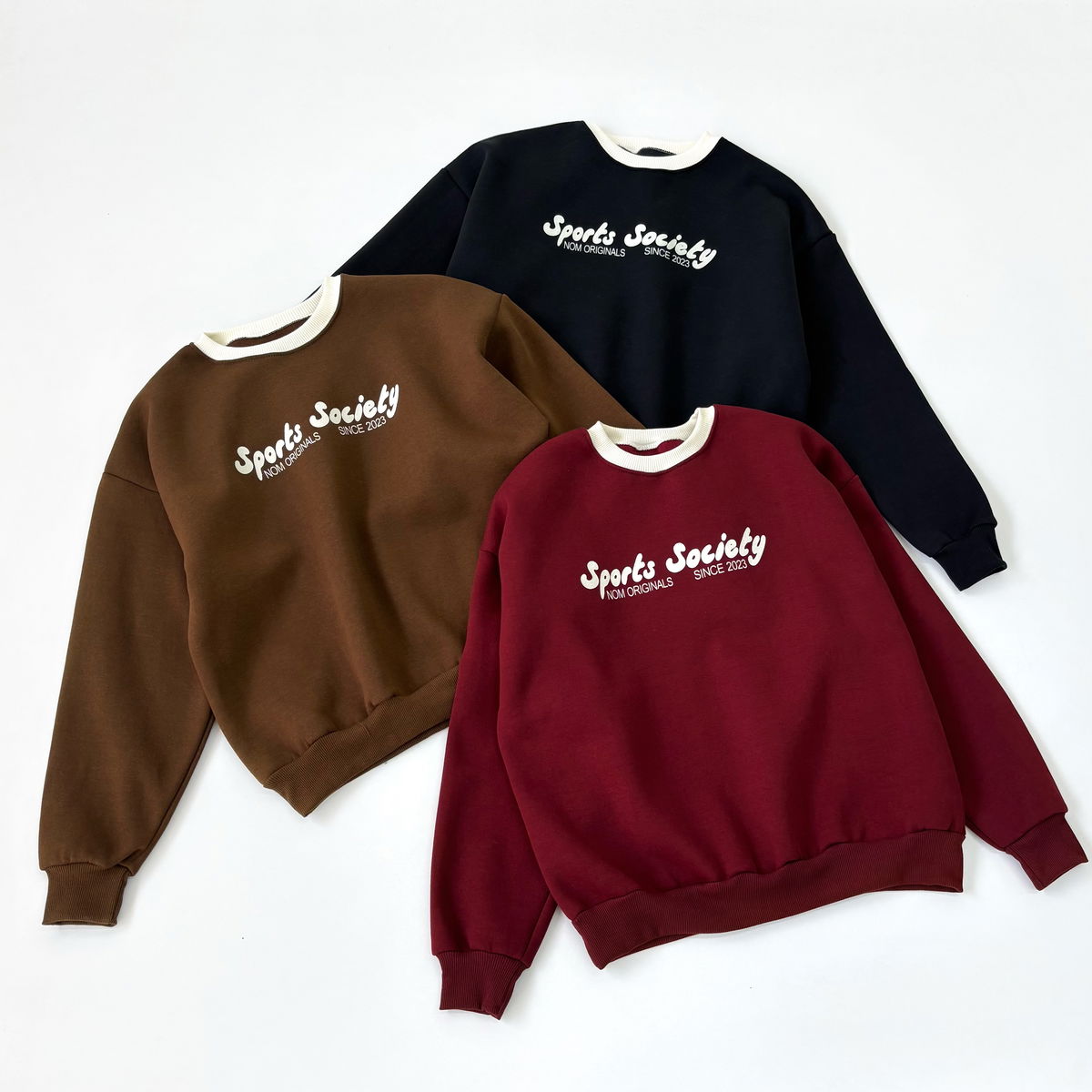 Buzo cuello redondo combinado y estampado "SPORTS SOCIETY"